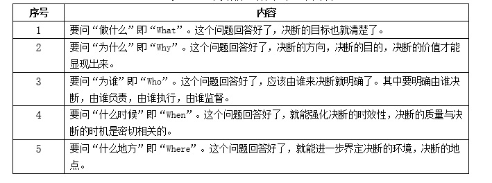 表2 決斷前應(yīng)做好的五個(gè)問答